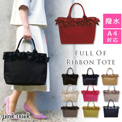 ピンクトリック チャビーリボン トートバッグリボン かわいい 可愛い バッグ Bag 鞄 かばん トートバッグ レディース ブラック黒 紺 撥水 はっ水 おしゃれ 安いプチプラ 肩掛け 手提げ 通勤 軽量 軽い 通学 入学式 卒園式 受験 母の日 品番 Kmjw Pink Trick